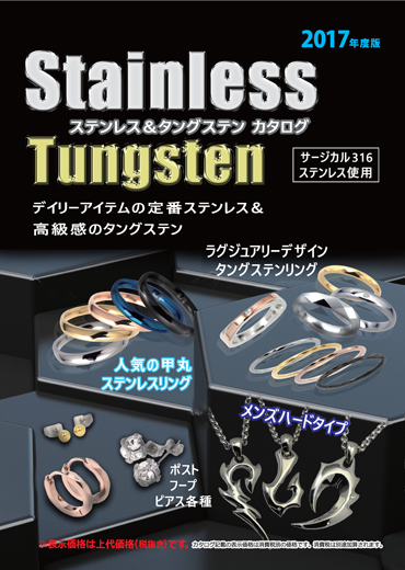 ステンレス・タングステン ステンレスペアリング・ペンダント 金属アレルギーの方にも優しい素材のステンレスでリング、ペンダント、チェーン、ブレスレットを製作いたしました。。当社の素材はほとんどサージカルステンレスは、316 と呼ばれ、ステンレスの中でも特にアレルギー性が低い素材となっております。医療用工具のメスやハサミ、ボディピアスにも使用されている素材です。 サビにくいので金属アレルギーの原因となる金属イオンが溶け出さないために、金属アレルギーを引き起こしにくいと考えられています。変色や劣化の遅いステンレス製アクセサリーをお勧めいたします。。 ステンレスチェーン ステンレスは、サビ、変質、腐食に強いため、温泉や海水浴、入浴時も着用いただけます。 スポーツで汗をかいても大丈夫ですし、お手入れなどの煩わしさからも解放されます。 活動的な方にぴったりのアクセサリーです。 メンズ メンズステンレス「BURNING」シリーズ。ハードデザインステンレスペンダント。存在感ある商品が揃っています。インパクト勝負の攻めアクセサリー。ステンレスはアレルギーに強く、強度もあり、理想的な素材です。ボリュームがありながらラフに使っていただけます。 タングステンリング・ペンダント タングステンはダイヤモンドに次ぐ硬さを持つ金属です。純金とほとんど同じ比重で、その重量感と、とても硬い性質、そして、その独特の奥深い輝きのため、最近ではアクセサリーの素材として注目されています。 ステンレス・タングステンのカタログダウンロードはこちら ステンレス・タングステンカタログ